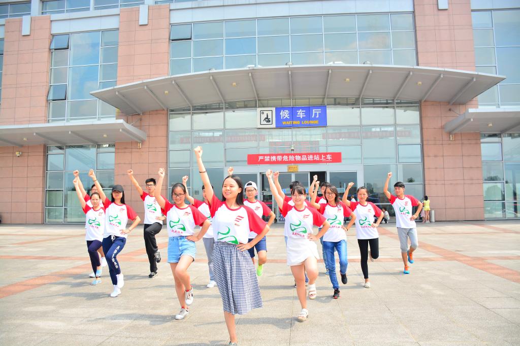 | 图为米兰milan官方网站“小苹果”青媒中心实践团队在井冈山火车站站前广场开展快闪活动 袁宏宇摄 |